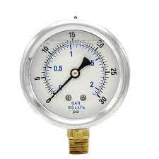 0-30 Psi Liquid Filled Gauges, 1/4" Bottom Mount