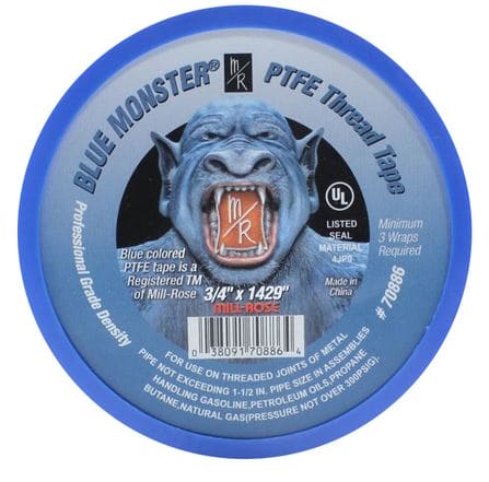 3/4" X 1429" Roll, Monster Blue Teflon Tape Std Pk 27 Includes Display