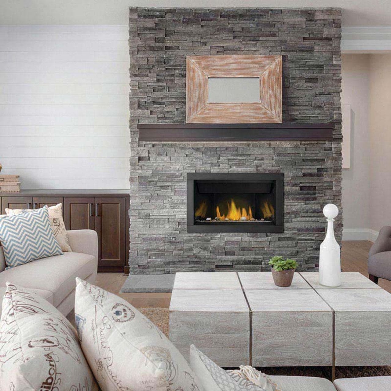Make the Napoleon Ascent linear gas fireplace the ideal finishing touch for your home. Customize the look by adding optional media enhancement kits like the natural and nautical feeling Beach Fire or Shore Fire kits. The earthy Mineral Rock kit is another colorful option and can be mixed and matched with the other kits to create a truly unique look. The eFIRE app allows you to control the fireplace from your favorite mobile device. The Ascent Linear adds sparkling luxury to any room with the topaz CRYSTALINE ember bed, wherever it's installed.