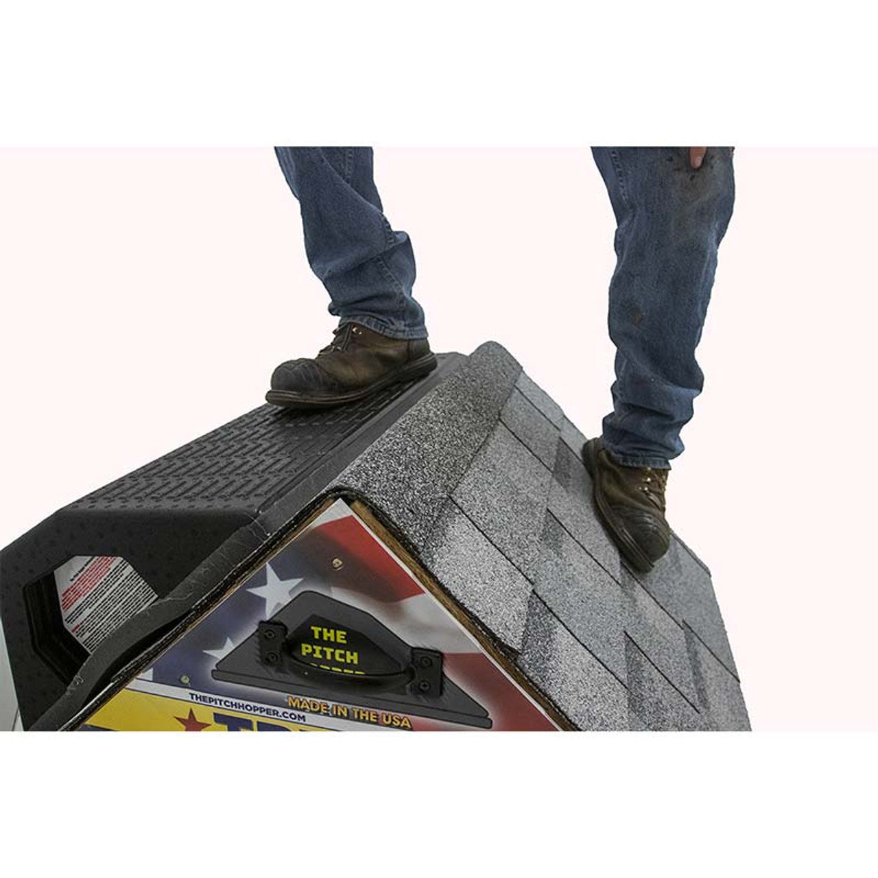 Discover our Pitch Hopper bundle, an indispensable solution for roofing professionals navigating steep pitch rooftops. This package includes six 24" pitch hoppers, specially designed for providing a safe and secure temporary working surface on even the steepest pitched asphalt roofs. Each hopper, in striking black, is not only lightweight but also remarkably durable, boasting a unique wedge and foam setup that enhances stability, mitigating any worries of slipping on steeper pitched surfaces. These hoppers are engineered to withstand high heat while harnessing the friction force for added grip. Lab-tested to hold over 3,000 pounds, they are incredibly reliable. With an average lifespan of 4 to 7 months per hopper, our bundle offers both convenience and peace of mind for your roofing projects on even the most challenging pitches.
