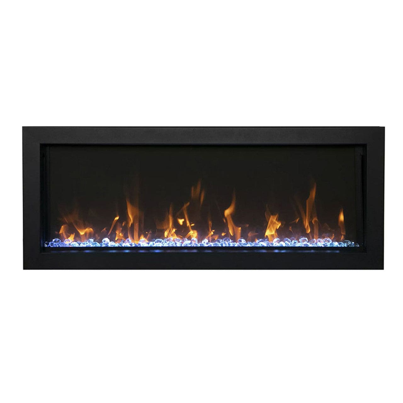 The Panorama Slim Series of built-in electric fireplaces have been designed to give you the maximum flexibility in selecting a unit that perfectly suits your needs. The stylish electric fireplace will be a focal point in any room, indoor or outdoor. At just 6 3/4” in-depth, the Slim is a practical choice for new construction projects and renovations alike. The BI-SLIM electric fireplace also gives you the ability to install your fireplace with your choice of finishing material built right to the glass for a “clean face” design or using the provided black metal surround. Your choice – your design! The Panorama series by Amantii Electric Fireplaces offers an exceptional full view viewing area, providing an immersive and captivating experience for users. This feature allows you to enjoy the realistic flames and glowing embers from a wider perspective, creating a stunning visual focal point in any room. The true trimless design of the Panorama series sets it apart from other built-in units in the market. With no visible trim or frame, the fireplace seamlessly blends into the surrounding wall, creating a sleek and modern appearance.