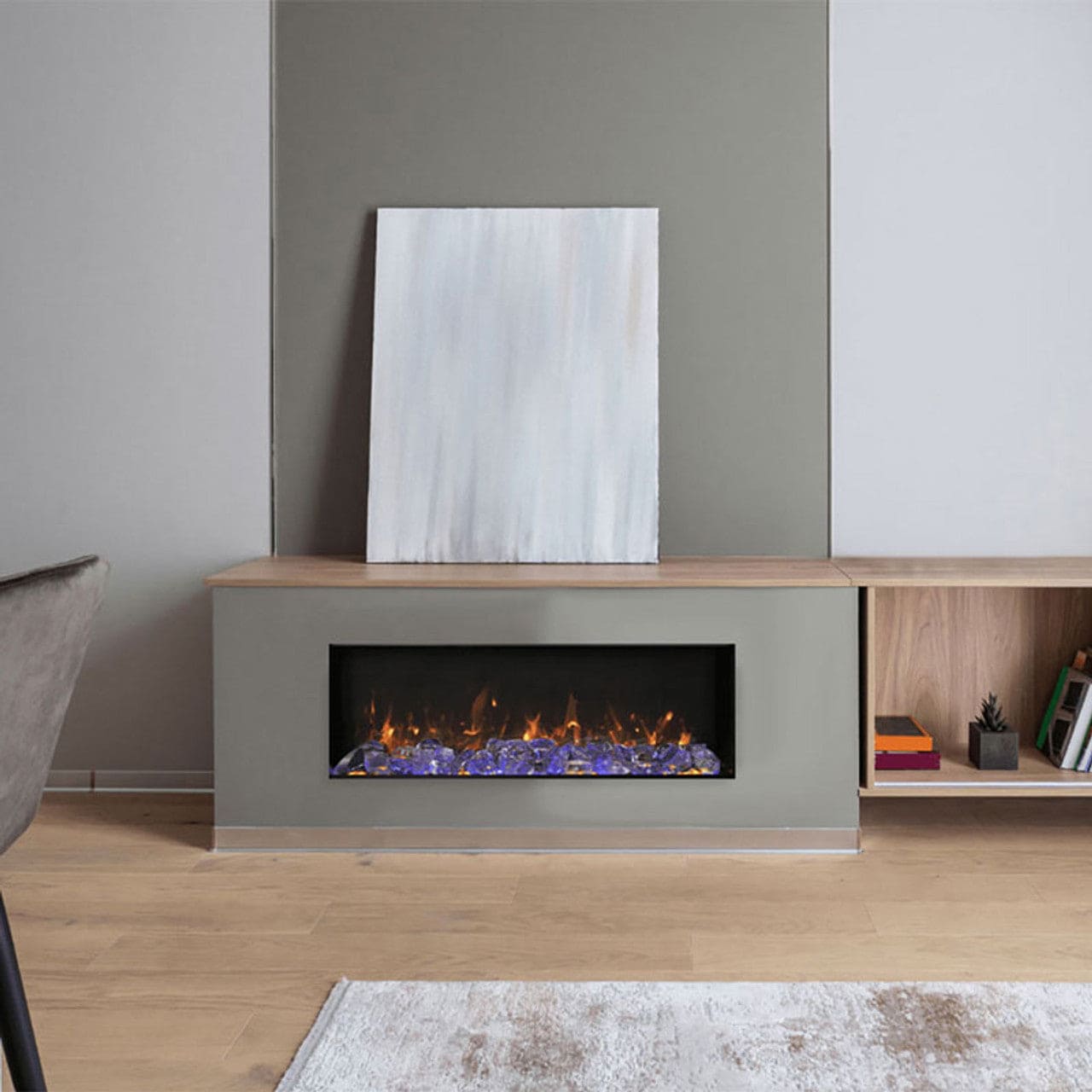 The Panorama Slim Series of built-in electric fireplaces have been designed to give you the maximum flexibility in selecting a unit that perfectly suits your needs. The stylish electric fireplace will be a focal point in any room, indoor or outdoor. At just 6 3/4” in-depth, the Slim is a practical choice for new construction projects and renovations alike. The BI-SLIM electric fireplace also gives you the ability to install your fireplace with your choice of finishing material built right to the glass for a “clean face” design or using the provided black metal surround. Your choice – your design! The Panorama series by Amantii Electric Fireplaces offers an exceptional full view viewing area, providing an immersive and captivating experience for users. This feature allows you to enjoy the realistic flames and glowing embers from a wider perspective, creating a stunning visual focal point in any room. The true trimless design of the Panorama series sets it apart from other built-in units in the market. With no visible trim or frame, the fireplace seamlessly blends into the surrounding wall, creating a sleek and modern appearance.