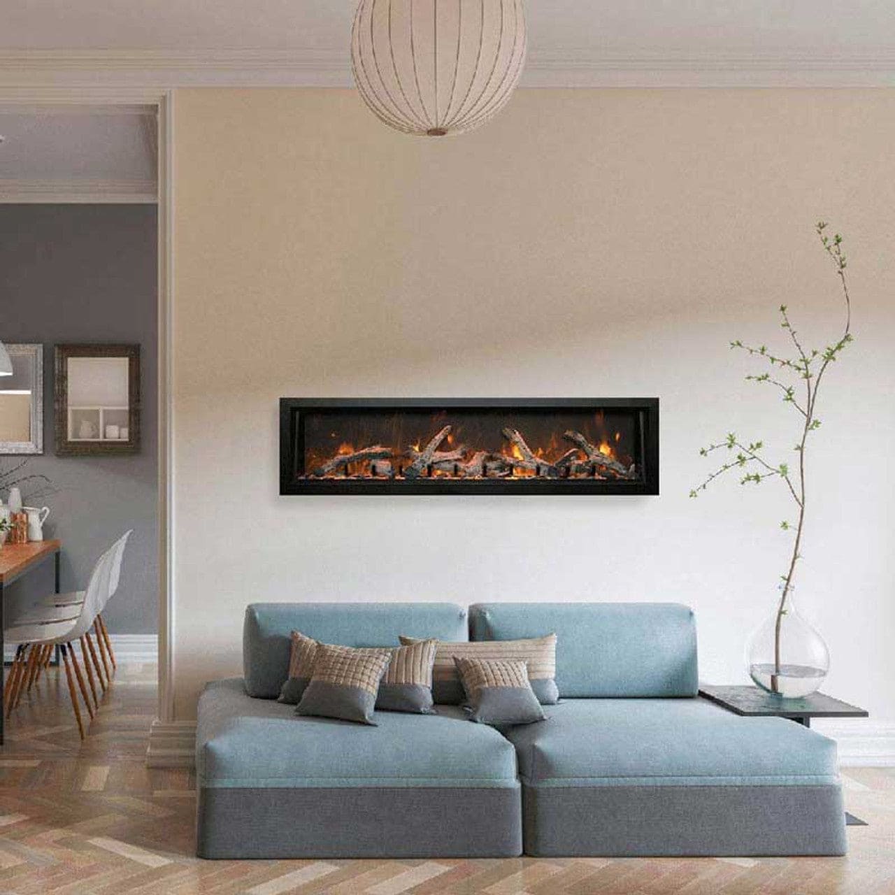 The stunning Panorama BI-Deep series will add a touch of elegance and sophistication to any room. This innovative fire is skillfully engineered to allow a truly trimless fire. Meticulous attention has been paid to the realization of the ember bed and flame pattern to ensure a perfect recreation of a natural fire. The Deep series gives you a 30.48cm depth and multiple length options, as well as giving you the ability to install your fireplace with your choice of finishing material built right up to the glass for edge to edge viewing or the using the provided black metal trim. Your choice- your design. The Panorama series by Amantii Electric Fireplaces offers an exceptional full view viewing area, providing an immersive and captivating experience for users. This feature allows you to enjoy the realistic flames and glowing embers from a wider perspective, creating a stunning visual focal point in any room. The true trimless design of the Panorama series sets it apart from other built-in units in the market. With no visible trim or frame, the fireplace seamlessly blends into the surrounding wall, creating a sleek and modern appearance.