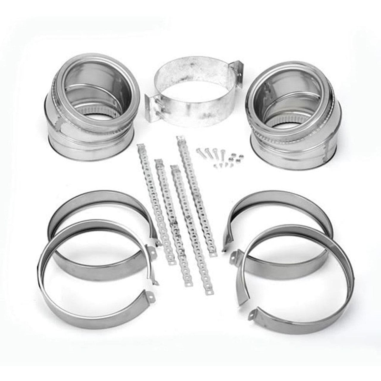 This 30-degree elbow kit includes two insulated elbows, four locking bands, one elbow support bracket, and fasteners. It allows you to offset obstructions in your venting system.