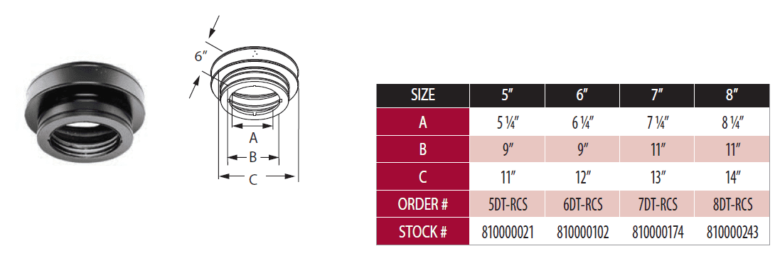 Supports chimney pipe and provides a positive connection between support box and chimney with a built-in twist-lock. Supports up to 60' of DuraTech Chimney. Use adapter to attach DVL or DuraBlack to the support box. Painted black. Trim collars are sold separately. (For adapters see DVL/DuraBlack section).
