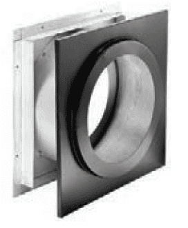 Adjusts from a minimum of 5 1/2” to a maximum of 9 1/2” wall thickness, and fits between standard wall studs. To accommodate thicker walls, the telescoping pieces can be extended up to 16” with a field-fabricated extension installed. Interior trim ring painted black. Must be installed with DuraTech chimney pipe horizontally through the wall and extend 6” into the room beyond the interior wall.