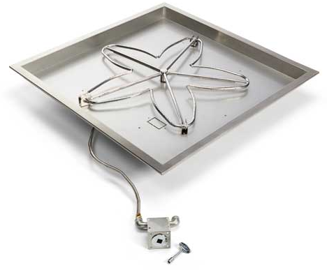 - Input flex line (to connect to gas supply), vinyl cover, and lava rock/glass media are not included.