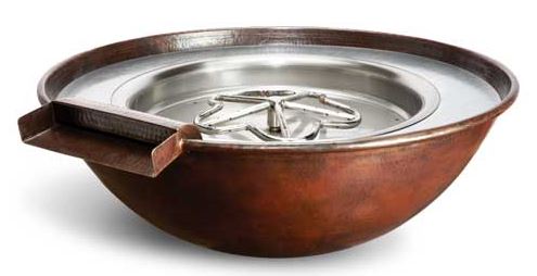 Hpc Tempe 31" Hammered Copper Fire And Water Bowl With Electronic Ignition, Lp - 24vac