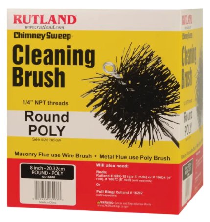 Made for homeowners and specifically designed for insulated metal chimneys, stainless steel, and metal stove pipes. Acid-resistant poly bristles clean aggressively without damaging. For best results, choose the brush size that matches the inside chimney flue measurements. This brush has a male 1/4″ NPT threaded connector for attaching to Rutland rods and pull rings.