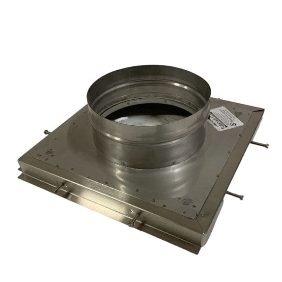 Terra-Cotta Top Plate 8" x 13" x13" (no-Drip Edge) fastens right on the terra-cotta flue tile. The top plate pressure screws to the tile like a traditional single flue cap and gives a great no hassle, finished look. No drilling or cutting required! The collar quick-connect band clamp securely tightens to the flexible chimney liner with ease and supports the weight of the liner while also keeping rain, wind, and snow out of the existing flue. The clay tile flue should protrude through the chimney crown at least 1.5" in order for the pressure screws to grab the sides of the flue tile.